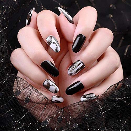 for "Medium Acrylic Nails : Nail Tips Black Fake Nails Ejiubas Witch Black False Nail Tips Acrylic Nails Tips Full Cover Stiletto Nails Matte With Glossy Medium Artificial Nails 24pcs With 1 Nail Glue Buy Online : White prom nails are the classiest look."